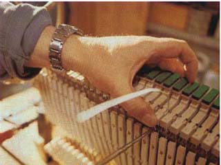 The pilots (capstan screws) are turned up or down to set the jacks at just the right height. This operation must be painstakingly carried out for each note.